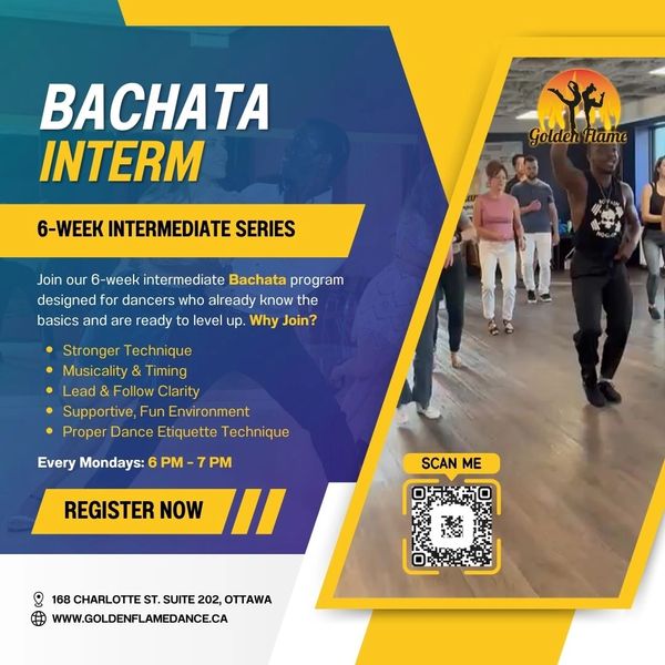 Build on your Bachata basics in this 6-week intermediate class. Improve your body movement, musicality, and partner work while learning more complex patterns and techniques. Best suited for dancers with prior beginner experience.