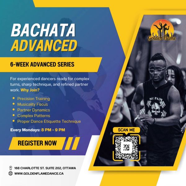 Refine your technique and grow your repertoire in this 6-week advanced Bachata series. Develop complex turn patterns, dynamic footwork, body isolations, and seamless partner transitions with a focus on control, precision, and expression.
