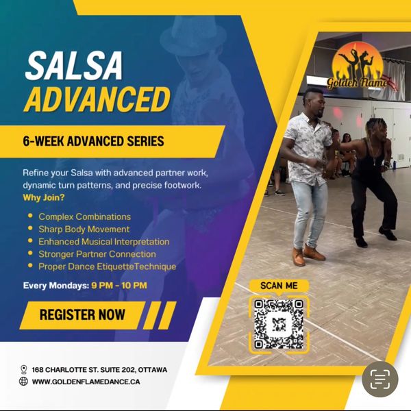 Challenge yourself with fast-paced footwork, intricate turn patterns, and refined partner work in this 6-week advanced Salsa series. Focus on precision, styling, and musical interpretation to sharpen your performance and social dancing skills.
